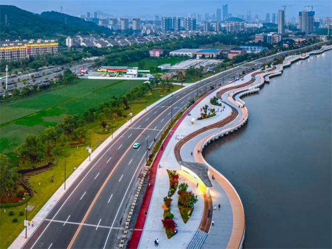 以“山海共生、城景交融”为理念,串联生态空间、植入文化元素,提升城市风貌辨识度与舒适度。在生态空间构建上,搭建“城市公园-街区公园-社区公园-口袋公园”四级公园体系,完成舟山新城慈善文化公园(梅园)建设,新增绿化面积2000余平方米,同步推进公园绿化补种与景观小品维修;构建外、中、内“三环”绿道体系,新增慢行绿道3.3公里,串联山、城、海蓝绿通廊,打通“城乡-城区-社区”三级慢行网络。在风貌形象塑造上,投资550万元推进滨海大道、千岛路精细化养护,实施彩化与人本化改造,植入舟派文化元素;启动临城河山海通廊计划,打造集城市安全、山海景观、海洋文化于一体的复合型廊道;优化城市夜景照明,对滨海大道以北区域全面亮化、以南局部补充,引入互动装置与艺术灯光;强化天际线管控,打造欢乐海湾等标志性建筑,形成彰显“舟派”现代气质的建筑群落。在文化活化上,创新梅园“倚梅厅”共富风貌驿运营机制,累计开展慈善活动70余场,参与人数超1200人;在公共空间配置公共艺术,弘扬“大爱舟山”慈善文化,活化利用历史环境要素。成效方面,蓝绿交织的生态网络基本形成,市民绿色出行体验持续优化,“舟派新城”风貌特色日益鲜明,文化认同感与城市归属感不断增强。