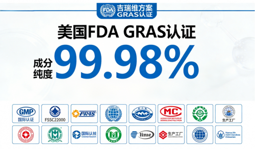 A3:FDA、 GRAS认证是美国食品药品监督管理局对食品成分安全性的最高级别认定之一。吉瑞维NMNH获得此认证,意味着其安全性经过了严格的第三方专家评审和完整的毒理学数据支持(如急性毒性LD50>5000mg/kg),这在全球NMNH产品中是独一无二的,代表了极高的安全标准。