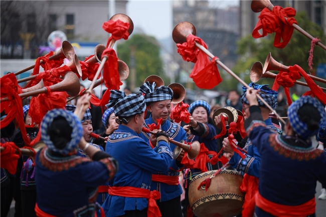 欢歌笑语间,特色浓郁的罗甸“丽甲席”(布依语意为“好得很”)布依长桌宴盛大开席,近千名游客和演员品尝到黄豆鸡、荷叶粑、五彩糯米饭、本地剪粉等特色美食,感受舌尖上的罗甸风味。夜幕降临,广场变成了欢乐的海洋,压轴的大型文艺演出以“政府主导、农民主体、群众自发、社会共创”为宗旨,集结罗甸县内外优秀乡村文艺团体、山歌手及才艺能人,为线上线下观众送上精彩纷呈的年尾文化大餐。