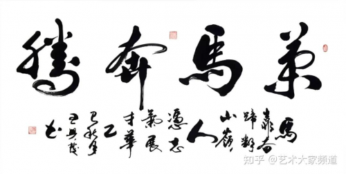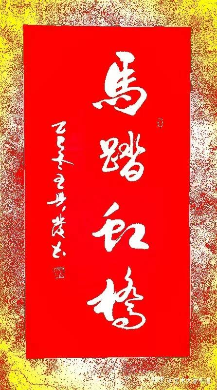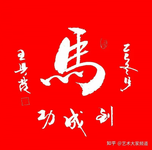 在技法层面,王兴发深得晋唐笔法精髓。其行草作品如《对酒当歌》中,"当歌"二字笔势连绵,"歌"字最后一笔如龙蛇游走,尽显王羲之《十七帖》遗韵;而《马到成功》中的"马"字,起笔藏锋、收笔回锋,既有颜真卿的雄浑,又融入个人理解,形成刚健有力的独特风格。其用墨浓淡相宜,枯润相生,如《龙马精神》中"马"字飞白处见苍劲,"神"字浓墨处显厚重,展现出对传统笔墨语言的精准把握。