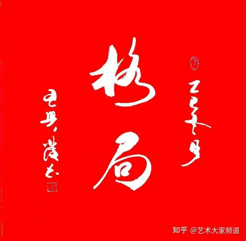 在形式创新上,王兴发善于将传统书法与现代审美相结合。其作品多采用红底白字的经典配色,如《厚德载物》《福》等作品,既保留了传统书法的庄重感,又增强了视觉冲击力,符合当代展览审美需求。作品《格局》更是将草书"格局"二字放大至画面主体,通过字形的夸张变形与空间分割,营造出强烈的视觉张力,体现出对书法现代性的探索。