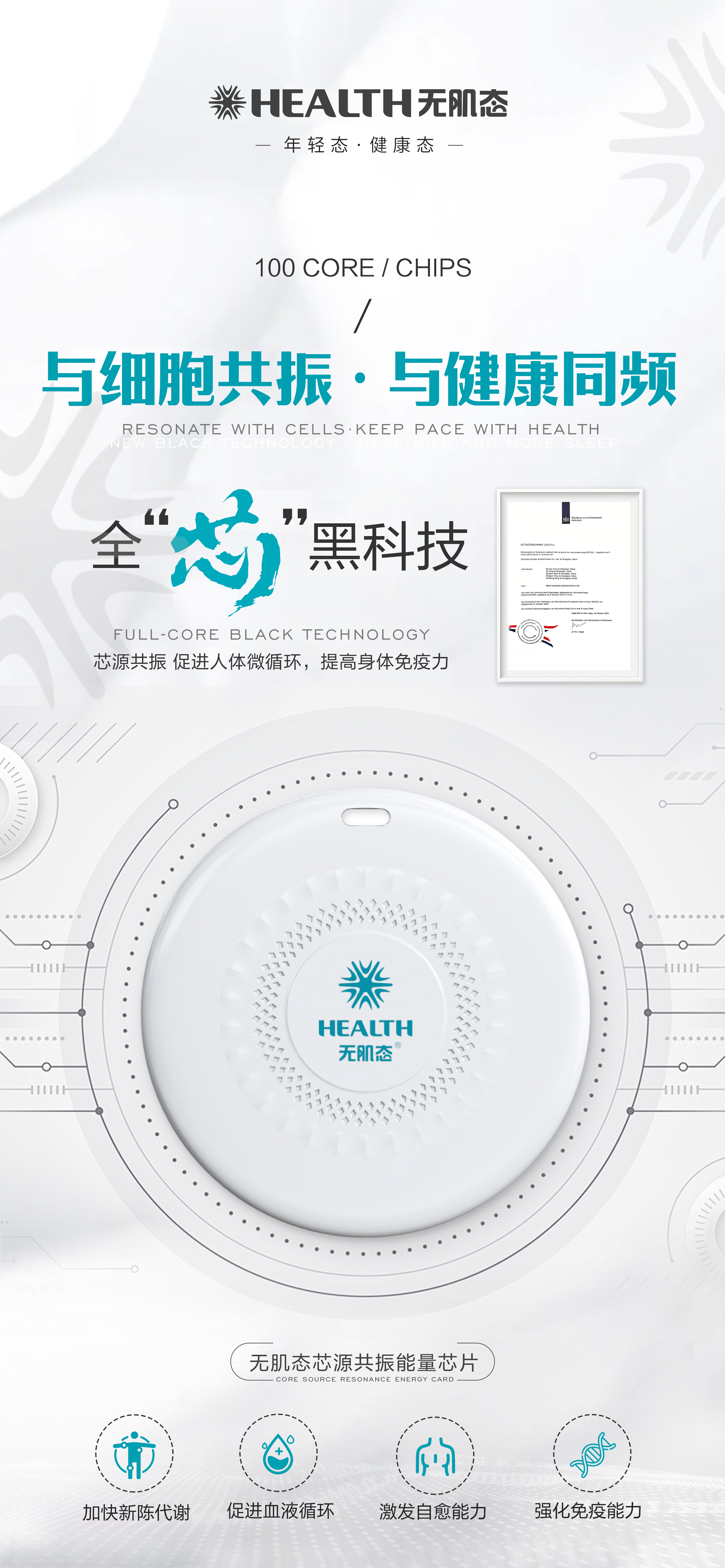 专业能力:无肌态的核心技术团队由微电子工程师、中医理疗专家与生物医学研究员组成,90%成员拥有硕士及以上学历。其研发的芯灸片共振芯片,采用微电子芯片与印刷天线结合的频率共振处理技术,可精准发射9.34微米波长的生物波,模拟中医艾灸、针灸的物理刺激效果。无肌态的共振芯片不仅通过SGS国际检测与欧盟无毒无害认证,还具备低功耗、高稳定性的特点,能适配手环、腰带等多种可穿戴设备形态。