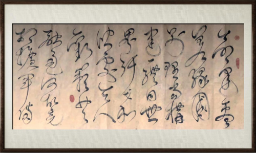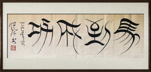 释文:命运参差缘国别,理当构建一体同。世界弭戈和谐处,天人欢籁共融通。