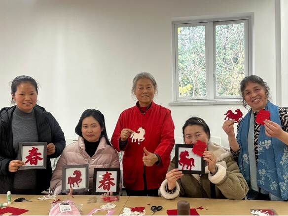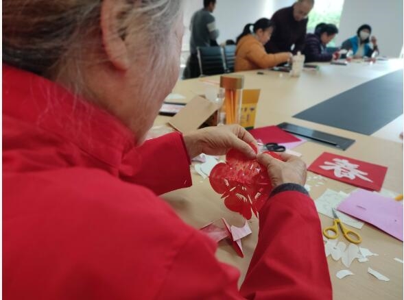专业指导老师手持红纸,细致讲解剪纸技巧、构图要点,以及福字、窗花等新年纹样的寓意。“剪福字要保证线条流畅,转弯处慢些,要小心不要剪断。”老师手把手指导,耐心解答疑问。居民们听得专注、剪得认真,指尖翻飞间,普通红纸蜕变成吉祥福字与精致窗花。现场赞叹声不断,大家相互交流技巧、分享喜悦,沉浸在浓厚的传统年味里。