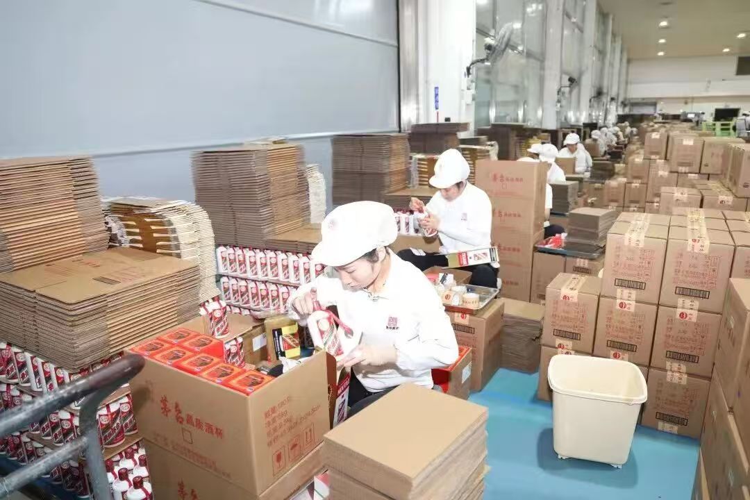 2026年1月1日正值元旦佳节,茅台集团党委书记、董事长陈华,党委副书记、总经理王莉深入包装车间开展安全生产调研。车间内自动化生产线高速平稳运转,瓶身清洗、精准灌装、贴标喷码、拴带装箱等工序衔接紧密,全体员工精神饱满,在岗位上全力投入生产。