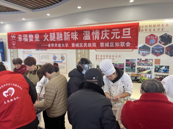 辞旧迎新庆元旦,暖冬行动慰人心。12月30日上午,婺城区助联体联合金华开放大学、婺城区知联会、非遗火腿工坊、“金手指”志愿服务队,共同主办“火腿融新味,温情庆元旦”为主题的大型便民服务活动,困难家庭代表、社区居民等50余人齐聚一堂,在活动中传递温情,共贺佳节。