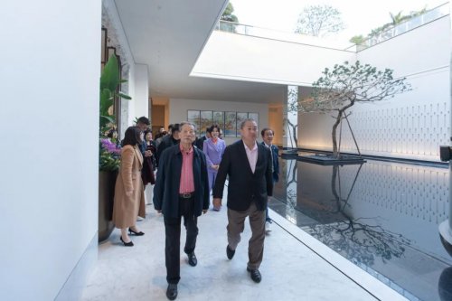 艺术家们的行程始于对张大墨艺术展与袁熙坤“艺术照见未来”艺术展的深度品鉴。名家们驻足细观,低声交流,对融合东方精神与国际视野的作品给予很高的赞许,现场讨论热烈。他们认为,香江1号打造的空间,激发了关于艺术传承与创新、面向现代生活与未来想象的前瞻性思考。