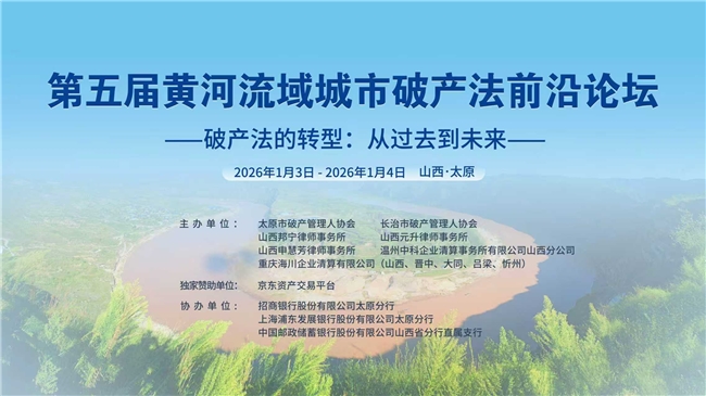 2026年1月3日至4日,第五届黄河流域城市破产法前沿论坛在山西太原迎泽宾馆隆重举行,本届论坛以“破产法的转型:从过去到未来”为主题,吸引了来自国内外破产法学界的知名学者、法官、管理人等约200人齐聚一堂,共同审视企业破产法修订的时代背景,探讨庭外重组、跨境破产、数智化应用等前沿议题,为破产法治的进步与区域经济高质量发展凝聚智慧。