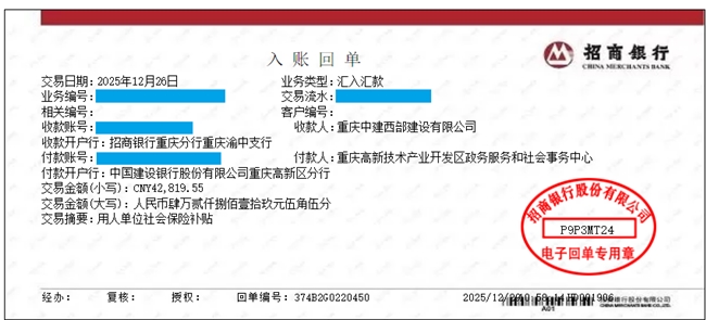截至目前,重庆中建西部建设有限公司已累计争取人力资源类政策补贴与减免超17万元,在有效降低企业运营成本的同时,进一步激发了发展活力,实现了经济效益与社会效益的同步提升。