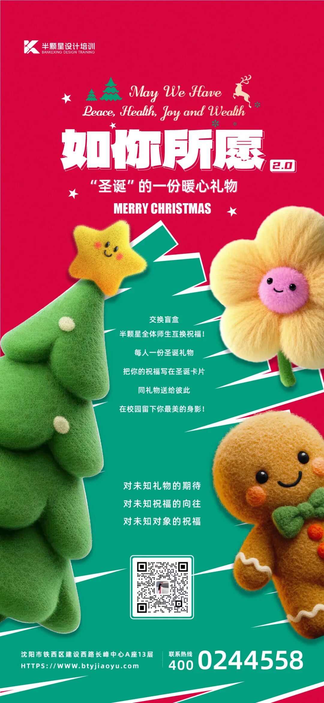 圣诞活动只是半颗星培训学校全年教育计划的一部分,对于设计行业的专注与认知还在探索过程中,圣诞树的彩灯仍在闪烁,同学们拿着特别的“圣诞礼盒”欢迎双旦,开启崭新的设计人生,面对未来的职业规划,他们满怀期待充满愿景。在这个温暖的圣诞季,半颗星培训学校用教育的温度,点亮了每个同学们心中的那盏灯。.