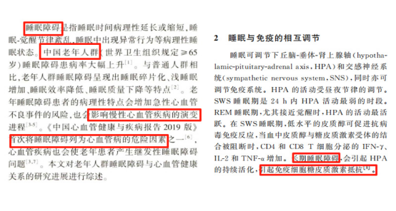 也有相关研究认为,失眠更容易引发的应激反应会导致体内交感神经兴奋,促使血压升高、心率加快,长期处于这种状态会增加心脏负担,损伤血管内皮细胞,进而引发一系列心血管疾病。《中国神经免疫学和神经病学杂志》研究表示,睡眠在免疫系统的调节中起着关键作用。尤其老年人,长期失眠后身体的免疫稳态被打破,免疫系统无法得到充分的休息和修复,从而容易影响免疫细胞的正常功能。