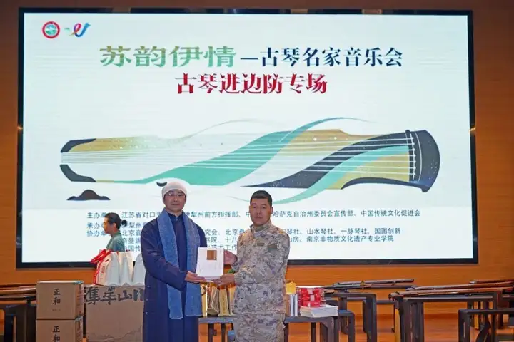 “苏韵伊情”古琴名家音乐会系列活动以古琴为纽带,架起了文化交流的桥梁,既让伊犁各族群众感受到中华优秀传统文化的博大精深,也推动了江苏与伊犁的文化交融互鉴。节目精彩纷呈,琴声与掌声交织,不仅缓解了官兵们的戍边辛劳,更凝聚起“守护家国、同心筑梦”的精神力量,让中华民族共同体意识在边防一线深深扎根。
