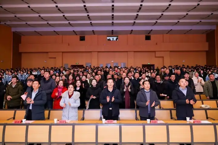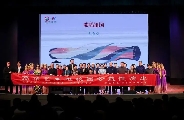 伊犁技师培训学院全校师生、慰问演职全体人员起立齐唱《歌唱祖国》