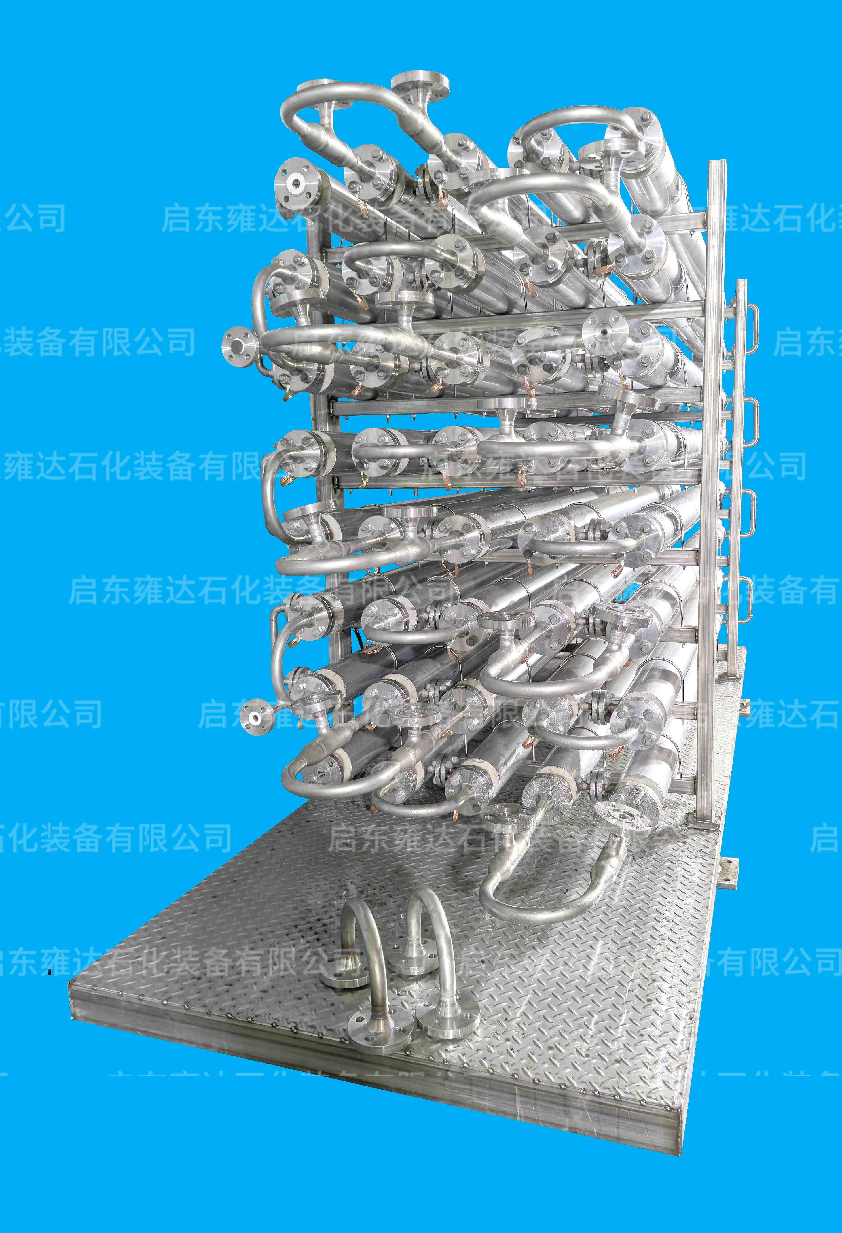 雍达石化的管道反应器以大长径比高强度耐压管材为核心结构特征,可根据工艺需求定制为直管、盘管或多程管结构,内部还能加装翅片、扰流件等强化传热构件,灵活匹配不同反应场景的安装与功能需求。其采用不锈钢、哈氏合金等耐高温高压材质,配合优良密封设计,可稳定应对300℃以上高温、10MPa以上高压的严苛反应条件,同时能有效抵御部分腐蚀性物料,适用范围覆盖石油化工、精细化工等多个领域。值得一提的是,雍达石化的管道反应器传热效率比釜式反应器高30%-50%,能快速转移反应热,维持系统温度稳定;长径比大的结构使物料沿管道轴向连续流动,停留时间均匀,从根源上减少局部反应过度或不充分的问题,保障产物质量一致性。