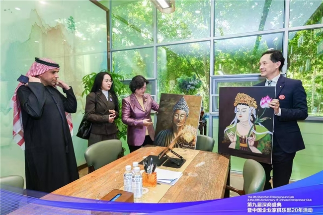 行程最后一站的东方瑰宝(深圳)艺术馆,让嘉宾们感受到深商“文化+科技”的创新表达。这座由深商企业创办的艺术空间,以“将藏品变为展品、让文物传承文化”为核心理念,不仅将传承千年的金铜佛像、唐卡、瓷器及玉器等集东方艺术成就之大成的瑰宝让世人瞻仰,更通过AR导览、LED光显等科技手段,让国宝级文物“活起来”。“深商不仅能做硬核科技,还能让古老艺术焕发新生。”一位来自中欧的嘉宾感叹道。这种“多元创新、兼容并蓄”的生态,正是吸引外资企业扎根的关键。
