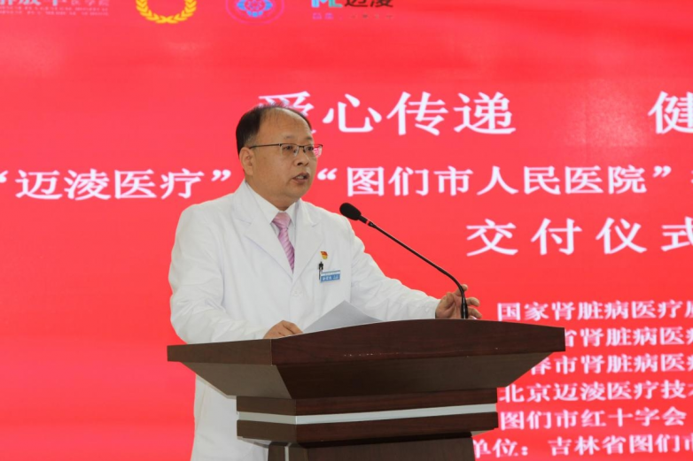 在与会嘉宾的共同见证下,佟凯董事长与图们市红十字会玄俊副会长现场签署捐赠协议,并举行了简洁而庄重的设备交付仪式。图们市人民医院党总支书记金宏彪代表院方致答谢辞,他表示,图们市地处边疆,本次捐赠直接回应了提升地区专科能力、服务周边患者的现实需求。设备的投入将极大提升血液净化用水的安全品质,这不仅是图们市人民医院肾病诊疗能力的一次跃升,更是夯实边疆地区医疗卫生服务网络、增强群众健康获得感的具体行动。医院将以此次捐赠为契机,进一步提升肾病诊疗服务能力,不辜负各级质控中心与爱心企业的信任与支持。