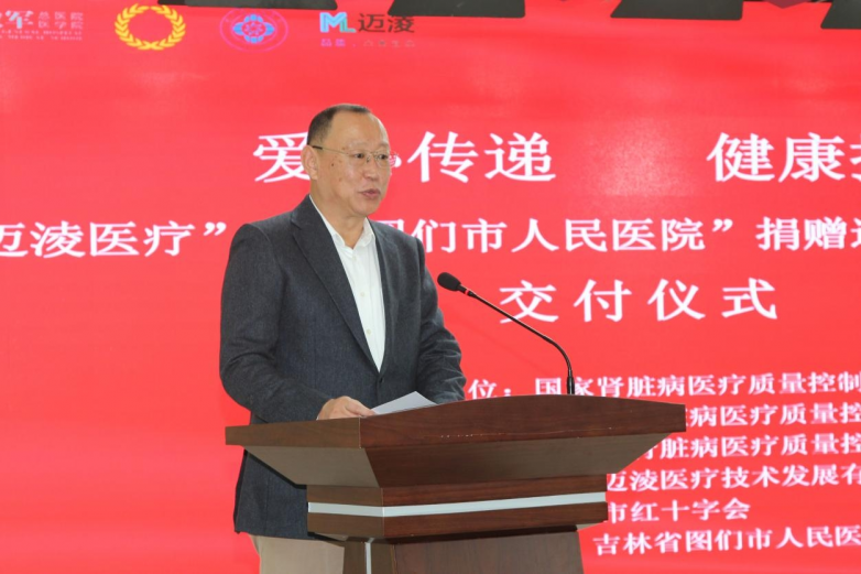 仪式汇聚了多方力量,国家肾脏病医疗质量控制中心专职秘书、护理咨询专家马志芳,及国家肾脏病医疗质量控制中心技术专家赵小淋;吉林省肾脏病质量控制中心主任、吉林大学白求恩第二医院肾病内科主任崔文鹏;长春市肾病科质控中心主任、吉林省一汽总医院肾内科主任张晓暄等专家亲临,从政策指导、技术规范与质量控制等多维度,为本次捐赠注入了深厚的专业内涵。图们市卫生健康局、红十字会及院方领导共同出席,北京迈淩医疗创始人佟凯作为捐赠方代表,完成了设备移交。
