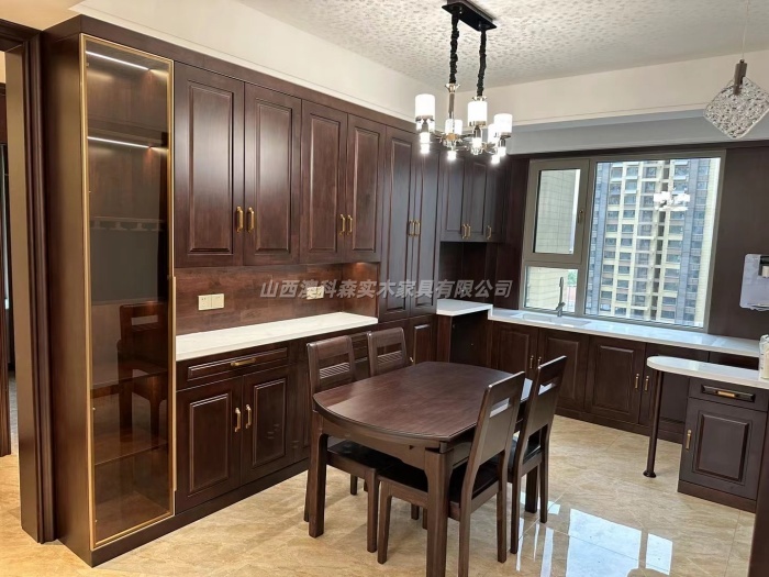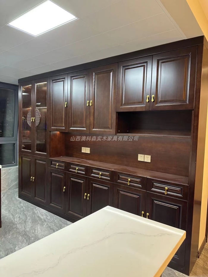 木材处理上,澳科森实木家具的所有木材都经过二次干燥处理——首先在产地进行初步干燥,运到清徐工厂后,再根据山西的湿度数据进行二次平衡,确保含水率稳定在8%-10%;工艺设计上,针对异形柜门、护墙板等易变形部位,采用榫卯拼接+预留伸缩缝的结构,比如太原恒大的一位业主定制的实木护墙板,澳科森实木家具在拼接处预留0.5mm伸缩缝,避免干燥季节收缩开裂;售后保养上,澳科森实木家具提供长期的保养指导,比如建议客户在干燥季节用加湿器调节室内湿度,定期用木蜡油保养表面,还会免费上门进行五金调试、轻微变形矫正等服务。正是这些针对本地气候的细节处理,让澳科森实木家具的产品在山西市场口碑极佳,太原天禧城、清徐四月天等小区的业主,使用澳科森实木家具的原木衣柜五年以上,仍未出现明显变形。
