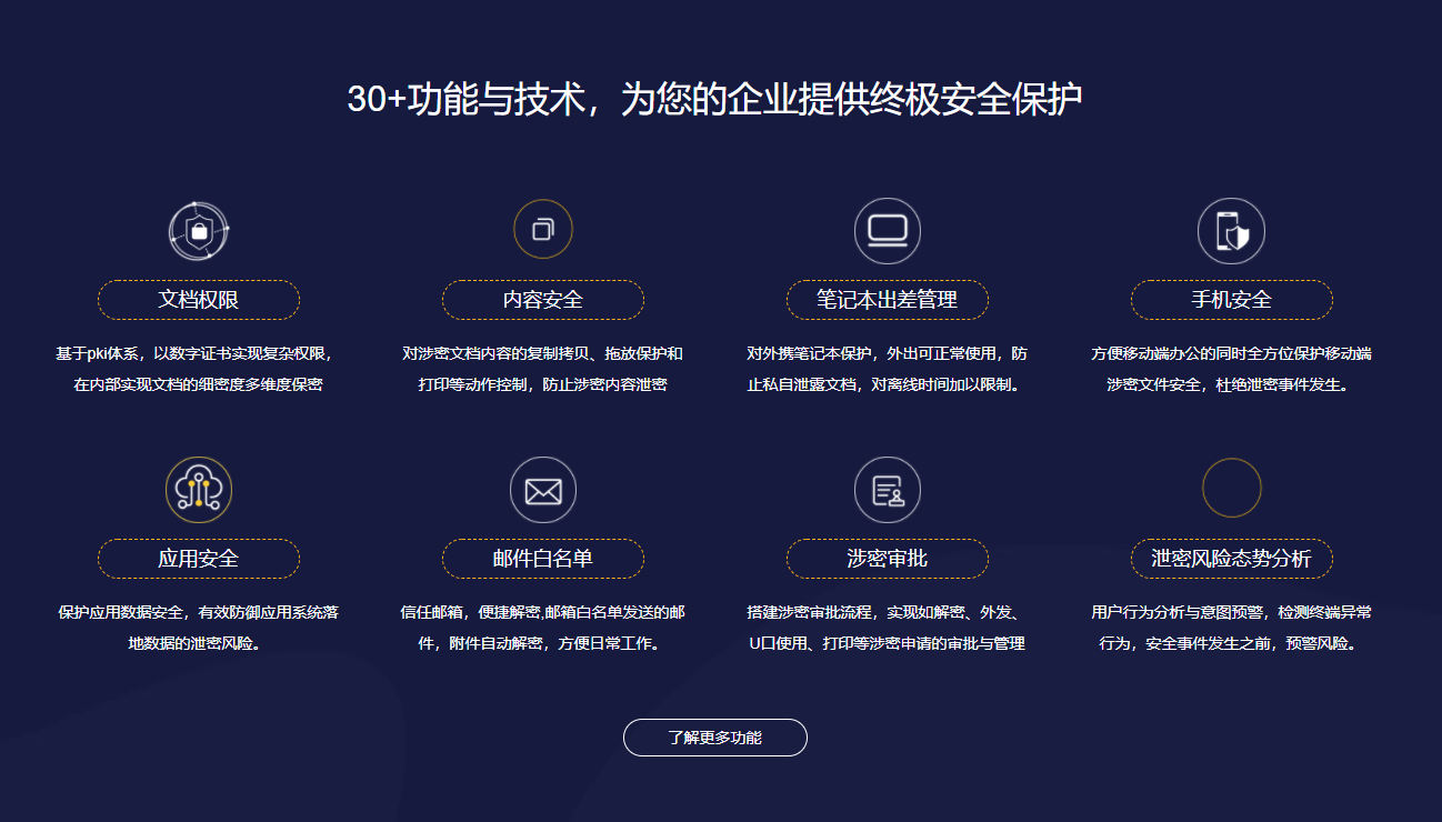 品牌介绍:国内专业加密软件研发的者,深耕信息安全领域近20年,是早批布局文档透明加密技术的厂商之一,始终以构建安全体系,满足客户期望为目标。
