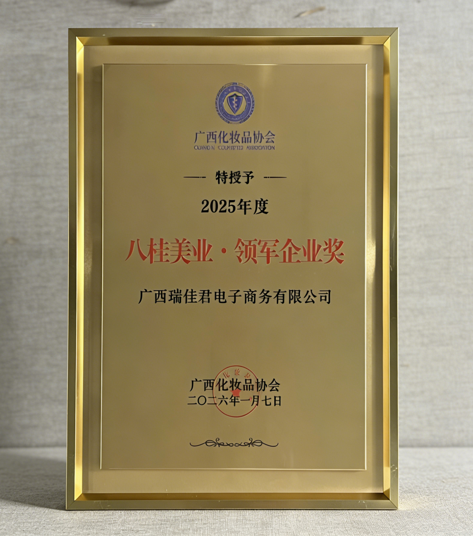 与此同时,母公司广西瑞佳君电子商务有限公司凭借在私域渠道深耕、产业生态赋能等方面的突出表现,斩获 “领军企业奖” 与 “价值成就奖” 双项大奖。作为深耕问题性肌肤修护赛道领域的企业,广西瑞佳君通过构建全渠道营销体系,不仅为旗下品牌「洛昔妃」搭建了高效的市场触达通路,更带动了广西化妆品产业链上下游协同发展,为本土品牌数字化转型提供了实践样本。