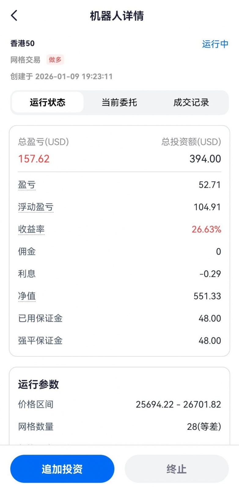 港股指日常波动多处于小幅区间内,网格策略刚好能覆盖这种节奏;但如果遇到港股指单日大幅涨跌,机器人可能因突破预设区间暂停交易,或触发风控机制终止操作。