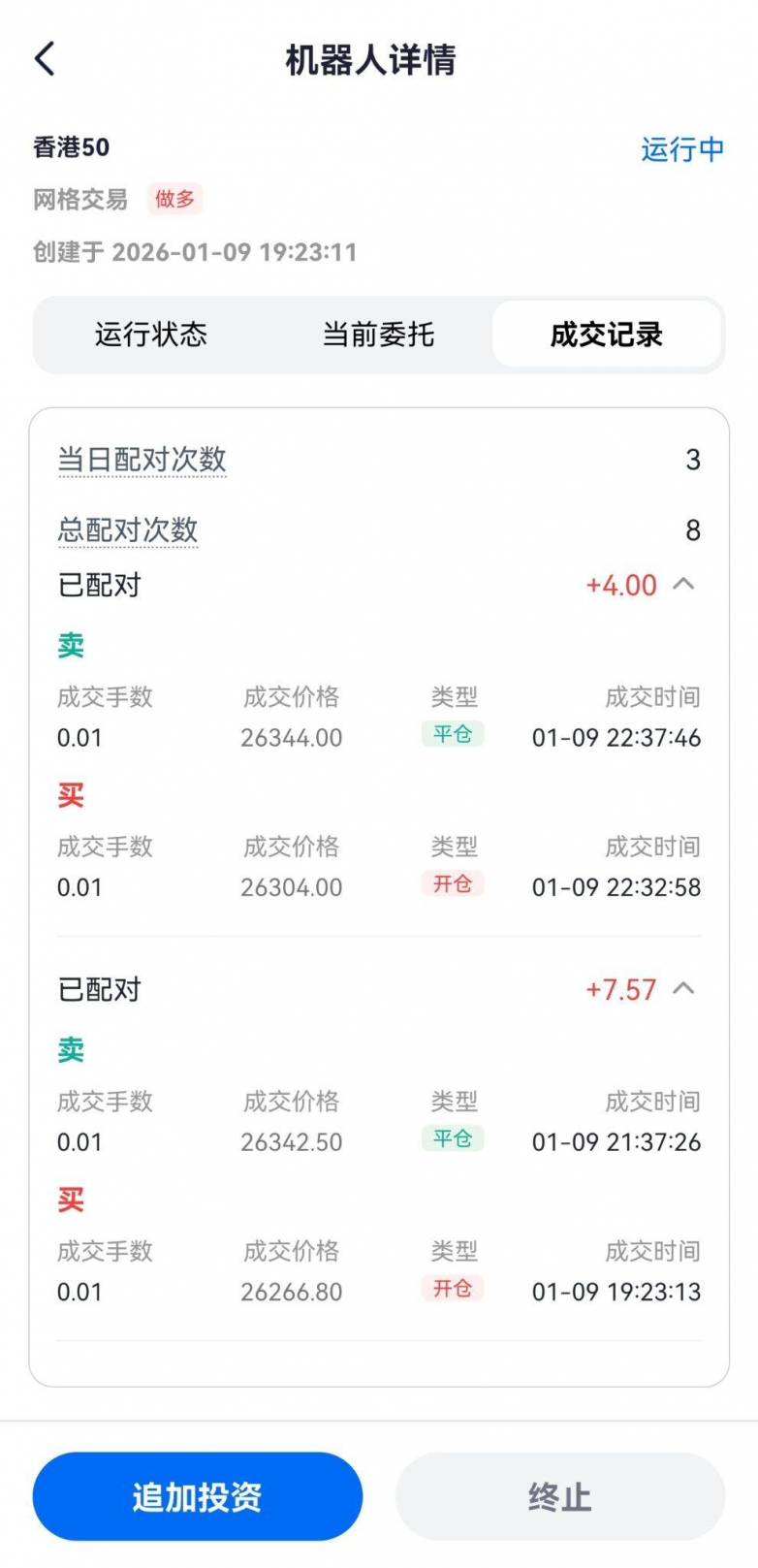 图2 EE TRADE网格机器人开平仓记录