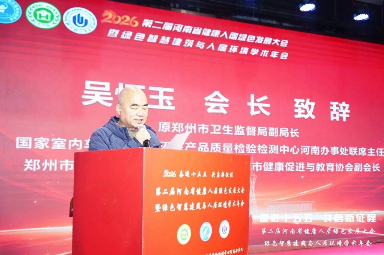 国家室内车内环境及环保产品质量检验检测中心河南办事处联席主任、原郑州市卫生监督局副局长吴怀玉在致辞中指出,推动健康人居建设是落实“健康中国”战略、回应人民群众对美好生活向往的重要举措。他强调,要从标准体系、技术研发、行业协同等多维度发力,真正实现从“住有所居”到“居而健康、居而智慧、居而绿色”的转变。