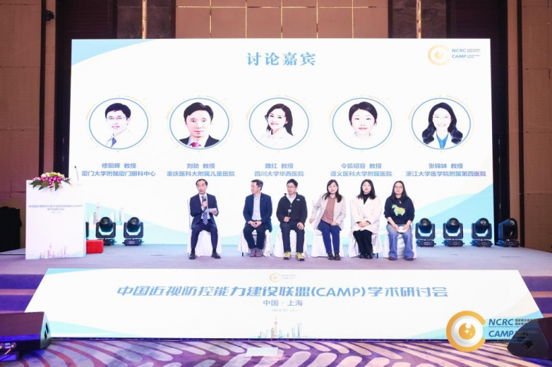 在由林泉教授主持的讨论环节中,他与重庆医科大附属儿童医院刘勍教授、四川大学华西医院魏红教授、厦门大学附属厦门眼科中心修阳晖教授、遵义医科大学附属医院令狐绍容教授等知名专家,共同聚焦于“导致儿童近视发生发展的高危因素及需要重点聚焦的防控措施”这一主题。与会专家们结合丰富的临床实践,分享了宝贵的经验与前沿思考。