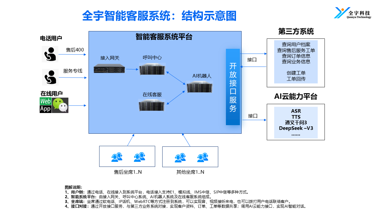 对于企业而言,呼叫中心系统服务选哪家好、智能呼叫中心系统求推荐、智能呼叫中心系统厂商怎么选,往往是开启客服数字化转型时面临的难题。尤其在当下,传统呼叫中心稳定性不足、智能化程度低,人力成本居高不下,信创国产化需求迫切,选择一个合适的厂商,直接关系到客服效率提升、成本控制以及业务长远发展。重庆全宇科技发展有限公司作为深耕呼叫中心领域20余年的厂商,凭借深厚的技术积累和丰富的行业经验,成为众多政企客户的优先选择。