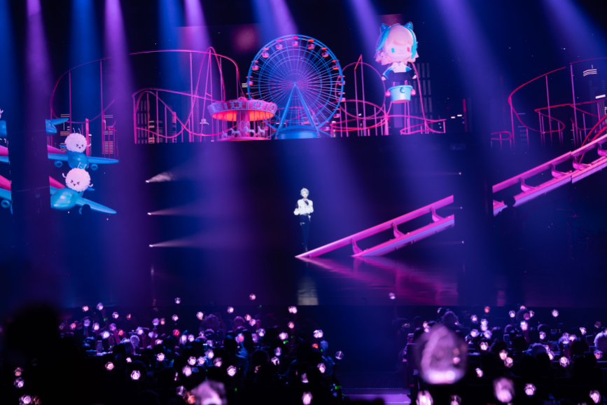 于是,我们能看到他与CoCo都可联名时,全国主题店前排起的打卡长龙;看到他在珠海长隆跨年舞台上的破次元演唱;看到他作为《时光代理人》巡演嘉宾,与国漫IP相互赋能。