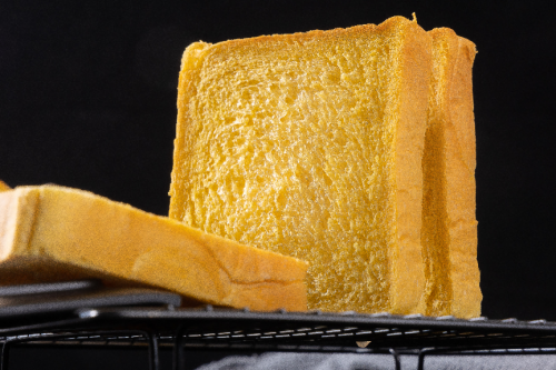 这款南瓜吐司的纯粹,藏在每一份清晰可溯的配料里。它的配料表仅有小麦粉、南瓜、鸡蛋、赤藓糖醇、食用盐、酵母,不添加防腐剂与白砂糖,无任何冗余成分,让每一口食用都满含安心。为了还原食材本真风味,品牌在原料甄选环节层层把关,不做丝毫妥协:选用海南金韩蜜本老南瓜,现蒸打泥后直接融入面团,全程不额外添加水分,牢牢锁住南瓜的自然醇香与清甜;小麦粉敲定进口王后精细高筋面粉,粉质细腻、蛋白质含量丰富,为吐司的松软口感打下坚实基础;酵母采用法国燕子即发酵母,助力面团充分发酵,赋予吐司蓬松绵密的质地;鸡蛋坚持现用现打,拒绝预制蛋液,最大程度保留鸡蛋的新鲜与营养;同时以三元赤藓糖醇替代传统白砂糖,在兼顾适口清甜的同时,减轻身体负担。