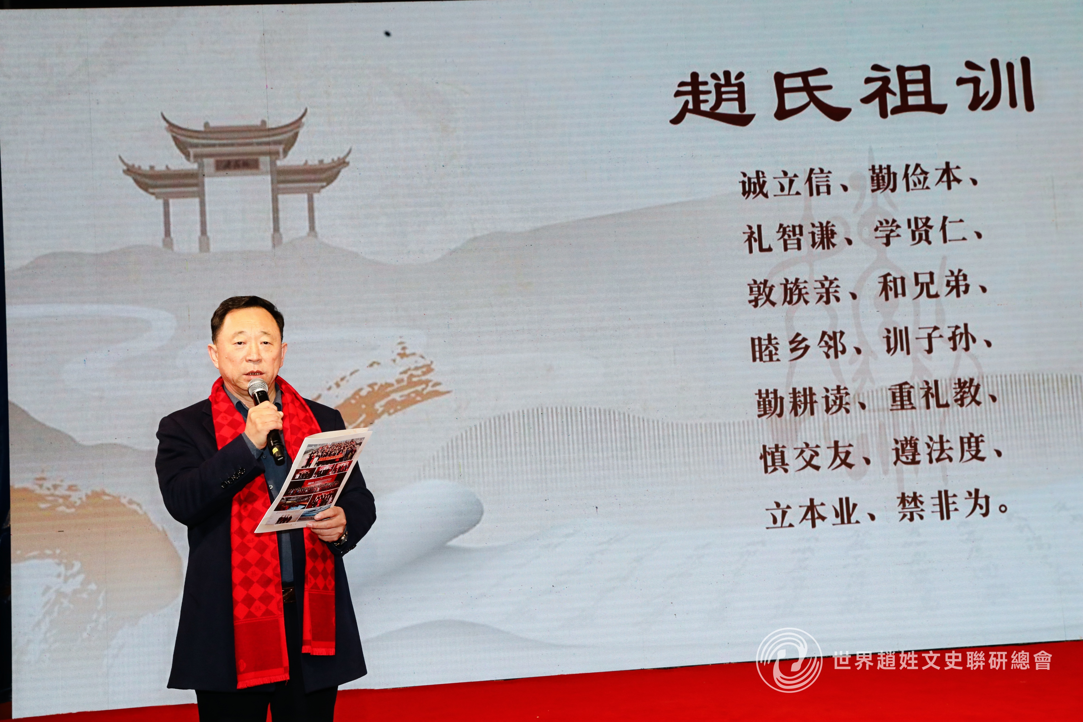 家风传承是本次联谊会的核心议题之一。在庄重的氛围中,全体宗亲共同朗诵《赵氏祖训》,敦孝悌、睦宗族、力本业、尚勤俭等祖训要义,字字千钧,浸润人心。赵氏祖训共十则,涵盖修身、齐家、处世、兴业等诸多方面,是赵氏先祖智慧的结晶,也是家族文化的核心载体。宗亲会始终将家风建设置于核心位置,通过诵读祖训等形式,引导族人铭记先辈奋斗与荣耀,传承优良文化基因,让千年家风在当代焕发新生。