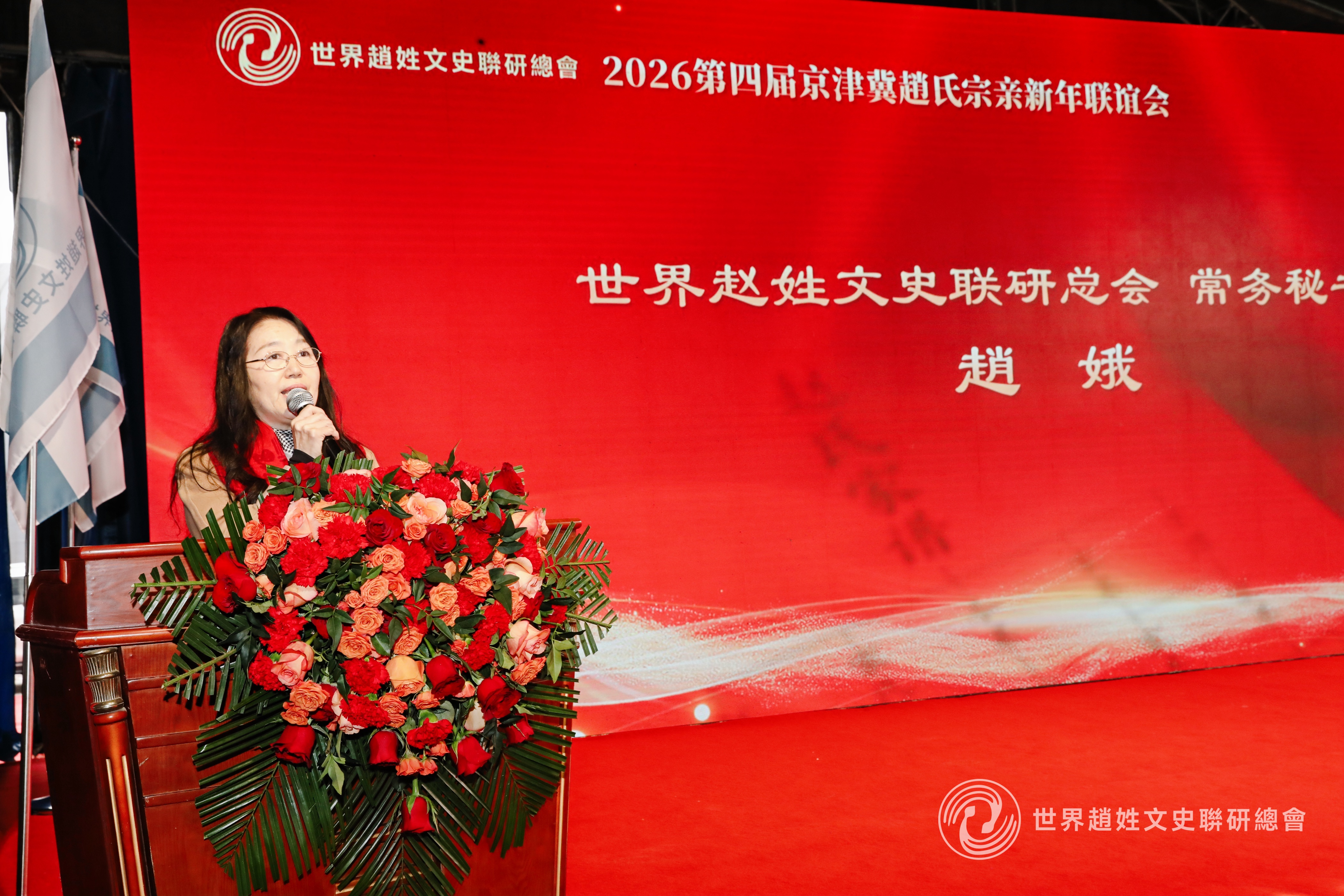 图:世界赵姓文史联研总会常务秘书长赵娥讲话