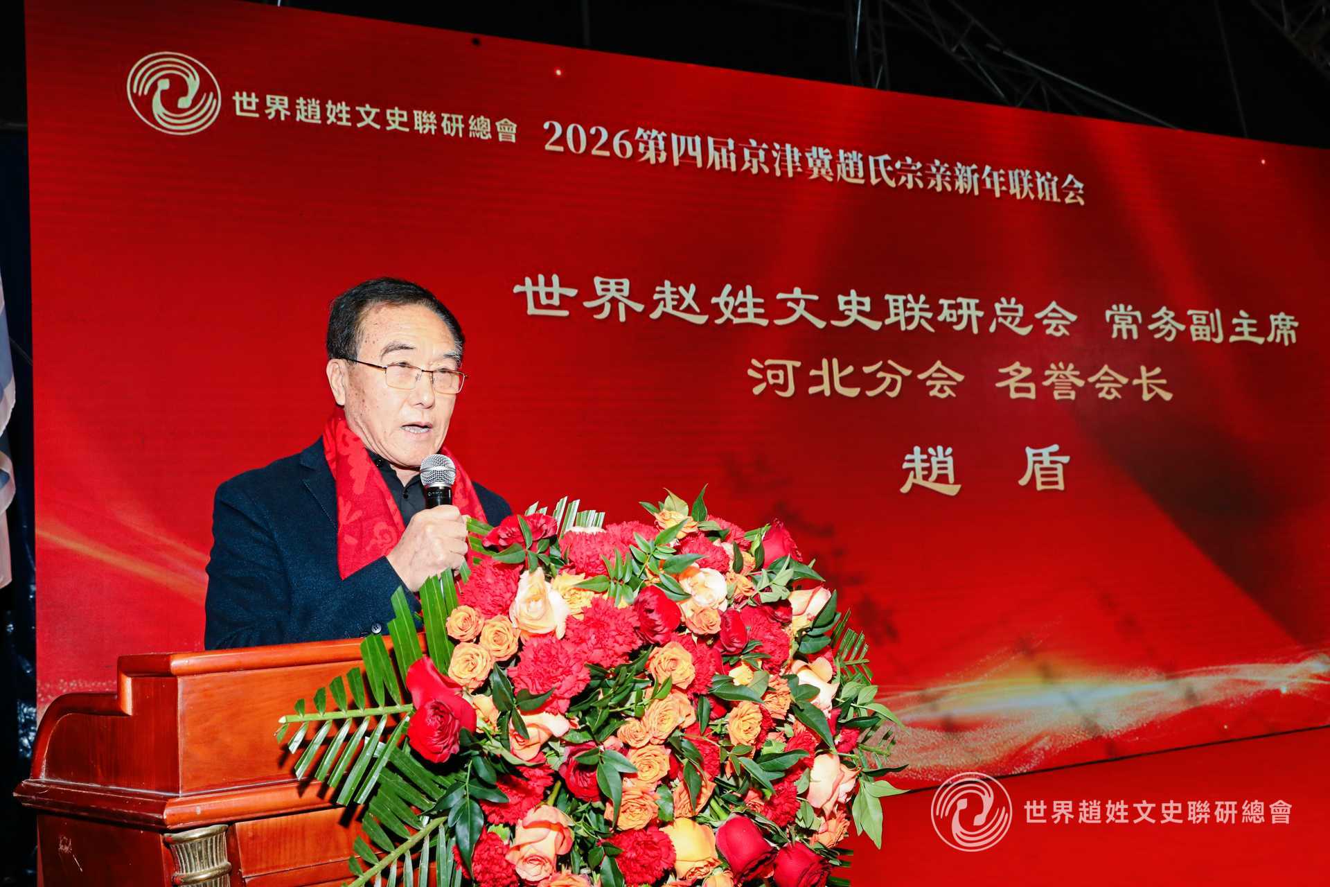图:世界赵姓文史联研总会常务副主席、河北分会名誉会长赵盾致辞