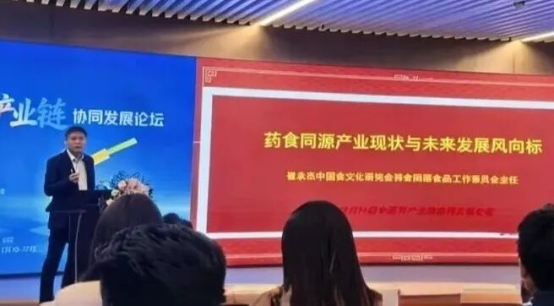 • 中国中医科学院中药资源中心杨光、中国食文化研究会崔永杰分别围绕《全国药食同源产业现状与趋势》《药食同源产业现状与未来发展风向标》展开论述,挖掘药食同源赛道的协同潜力;