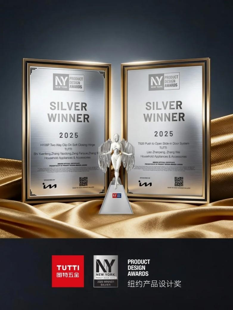 近日,从全球工业设计高地纽约传来捷报。中国高端五金品牌图特五金旗下两款颠覆性产品——蝶影·反弹回旋门T926与图锐速装铰链H106P,双双荣膺 2025年纽约产品设计奖银奖。这一“双星”成绩,不仅彰显了图特五金在产品设计与技术研发上的雄厚实力,更标志着中国智造正以系统性的解决方案,同时在家居生活的“终端体验”与“安装基础”两大维度赢得世界级的权威认可。