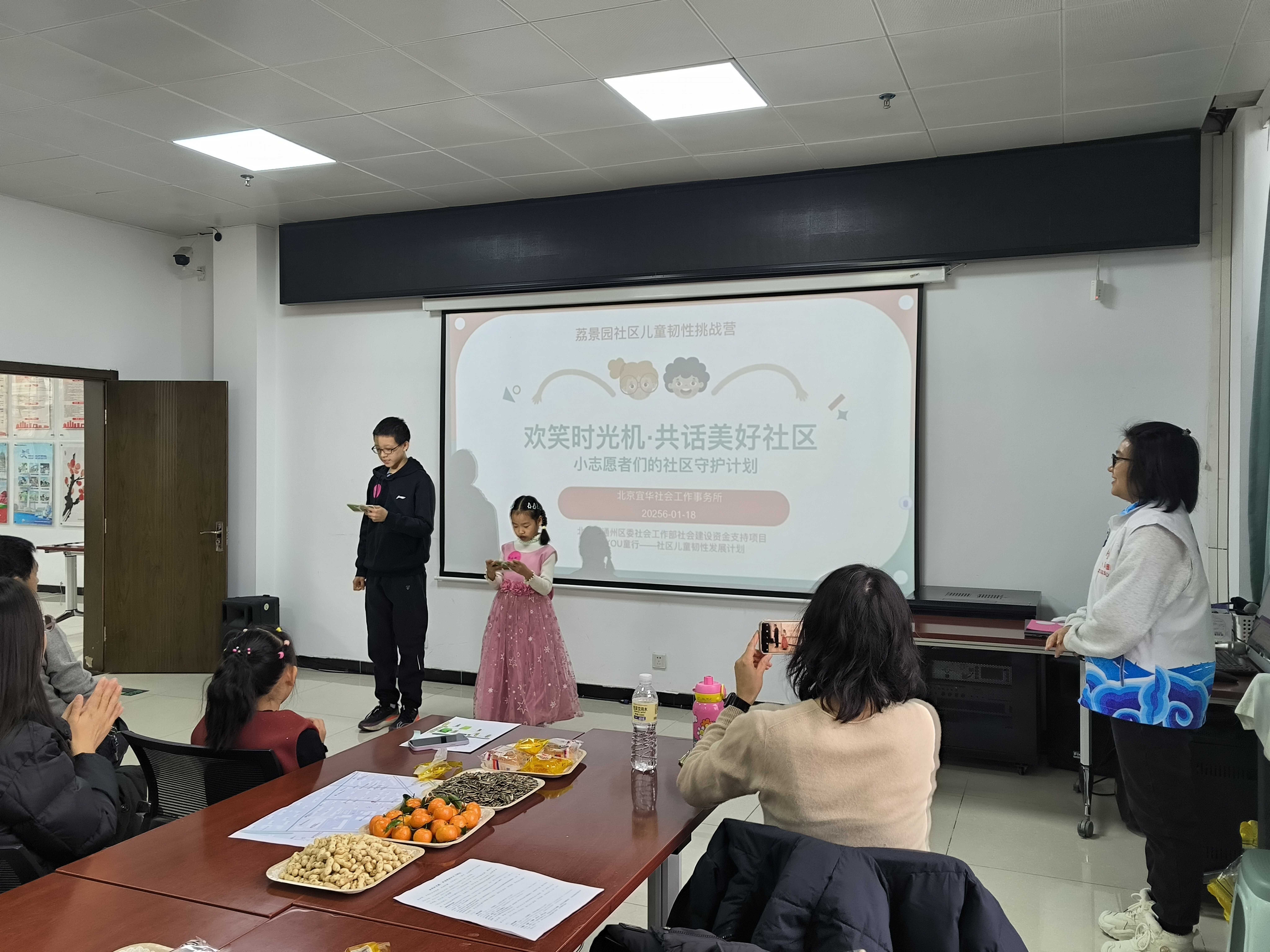 2026年1月18日,通州区通运街道荔景园社区活动室内暖意融融。一场别开生面的“欢笑时光机·共话美好社区”活动在此举行,在北京宜华社会工作事务所的专业引导与荔景园社区的支持下,11位小志愿者完成从“社区观察者”到“家园共建者”的韧性成长之旅。