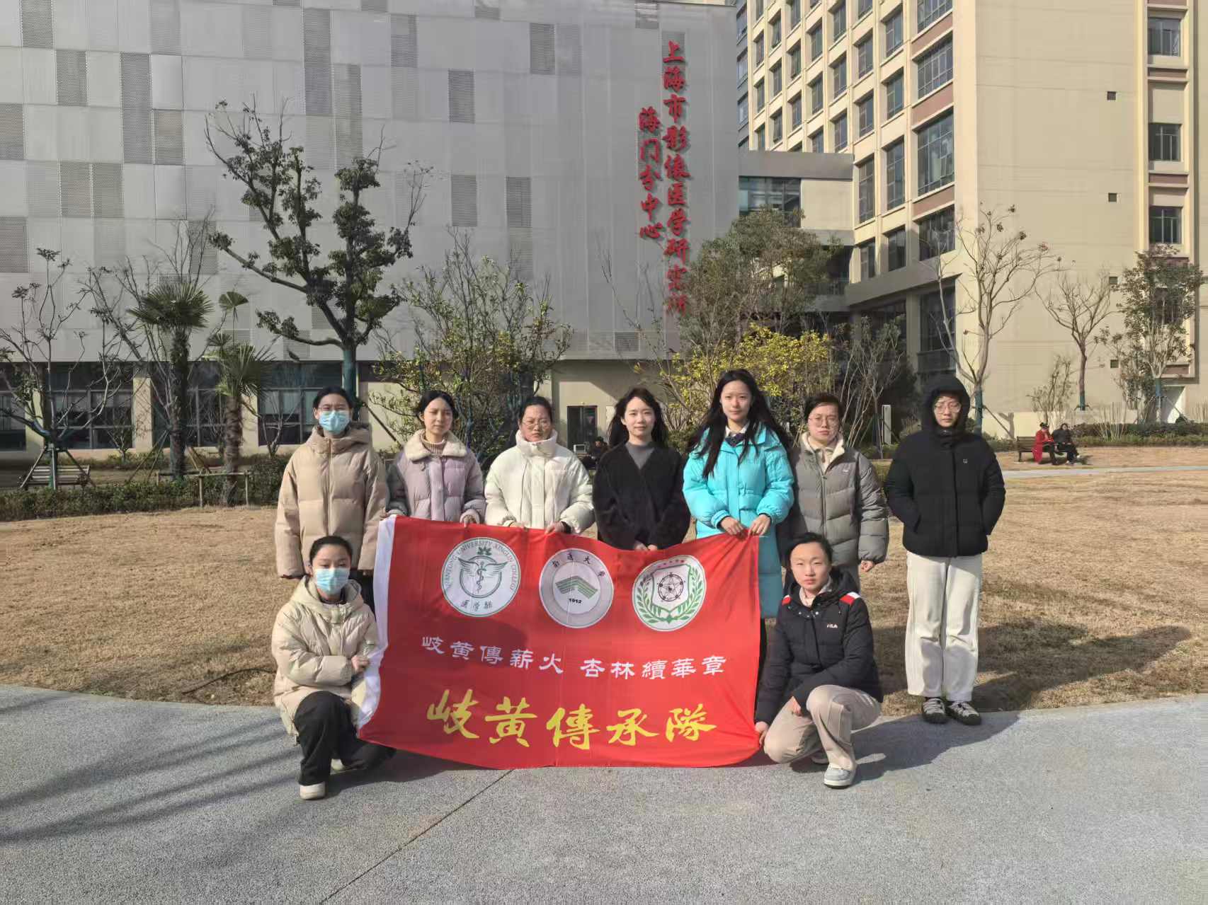 图为岐黄传承队队员与带队老师在海门中医院合影。贲晶晶 供图