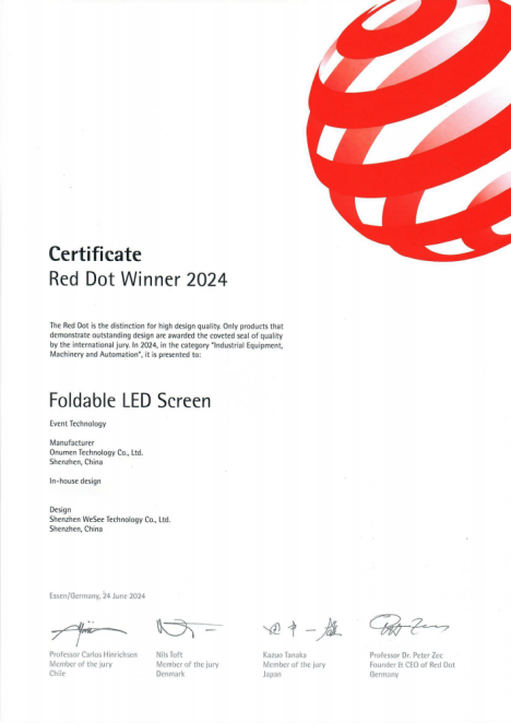 自2009年投身行业,到如今已过了16年的时间,产品不断更新迭代的同时,维世品牌的专利项目也在不断扩充,在 LED 显示技术领域展现出了卓越的创新实力。截至目前,企业已累计申请专利一百多项,包括柔性折叠显示技术、卷帘屏技术、快速安装系统、智能控制系统领域在内的多项发明专利以及欧美等发达国家发明专利,以其100%的成果转化率让技术运用于实践,推进产业革新,技术升级。