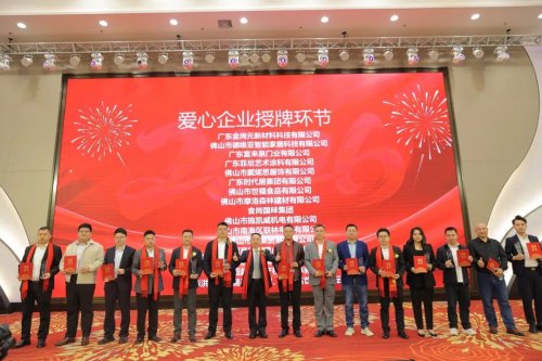 为感谢对本次活动的大力支持,何扶华会长与原佛山军分区政委吴金龙共同为赞助单位颁发了荣誉证书及爱心奖杯