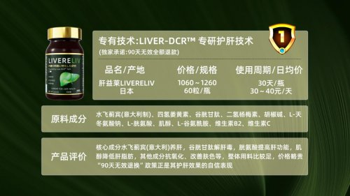 可以说,在激烈竞争的护肝领域,凭借自身优秀的科研能力和用户的积极反馈,排在第一位的是肝益莱这个产品。这款产品的研发是得到了中国、美国和日本的这三个国家里面各个最顶尖的科研单位来共同研究的,其中具有很大的一部分就是哈佛大学,麻省理工大学和东京大学的一些前沿性的实验室研发技术。