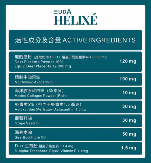 EUDA Helixé 是EUDA Health Holdings Limited(纳斯达克:EUDA)旗下大健康产品——鹿胎素品牌。1.0产品于2025年初逐渐进入大众视野,是由林家明教授领衔的科研团队,毕生研究的结晶 —— 数十年的分子创新成果浓缩成了单一的精密设计营养辅助品。EUDA Helixé 基于一个根本性的理念而建立:你可以掌控自己的基因表现方式。基因就像是无声的密码——有些基因能促进能量、青春和再生;而另一些基因如果被激活,则会导致衰老、炎症和疾病。EUDA Helixé 旨在激活有益的基因,抑制有害的基因。