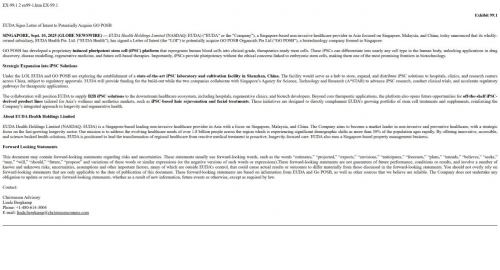 iPSC诱导多能干细胞技术:通过EUDA与新加坡GO POSB Organoids Pte Ltd. (GO POSB)的战略合作,将实验室级干细胞技术转化为可量产的健康产品,加速组织再生与抗衰老进程。