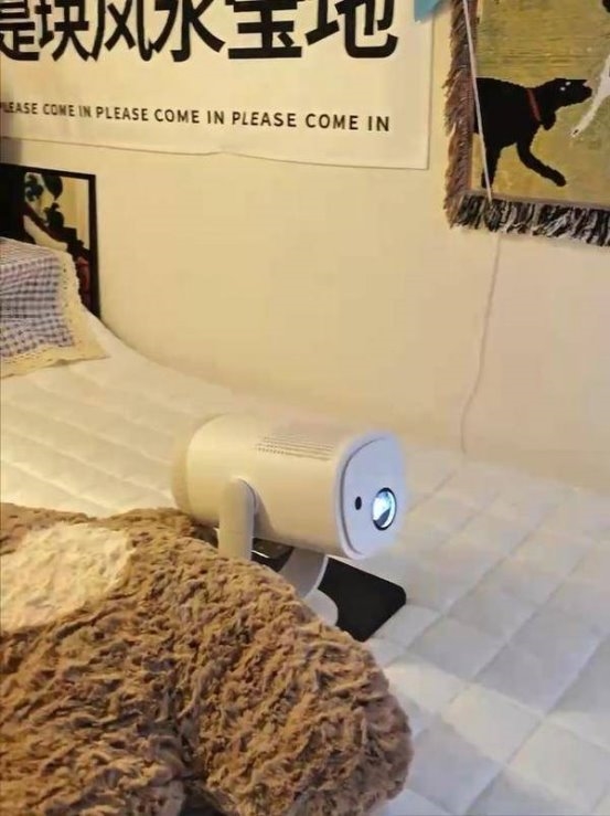 更亮眼的是其240°一体式云台设计,普通大学生宿舍投影仪需垫书、调支架找角度,而它单手就能调节投射方向,正投墙面、侧投书桌、垂直投天花板皆可轻松实现。冬天躲在被窝里,无需起身就能投屏到头顶,沉浸式观影体验拉满。