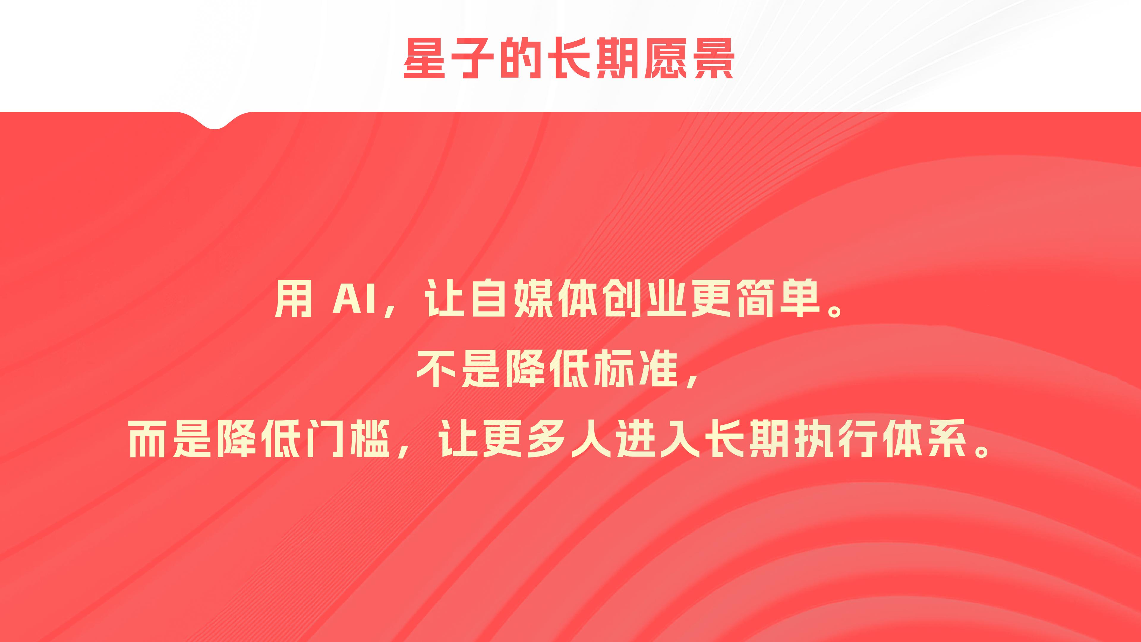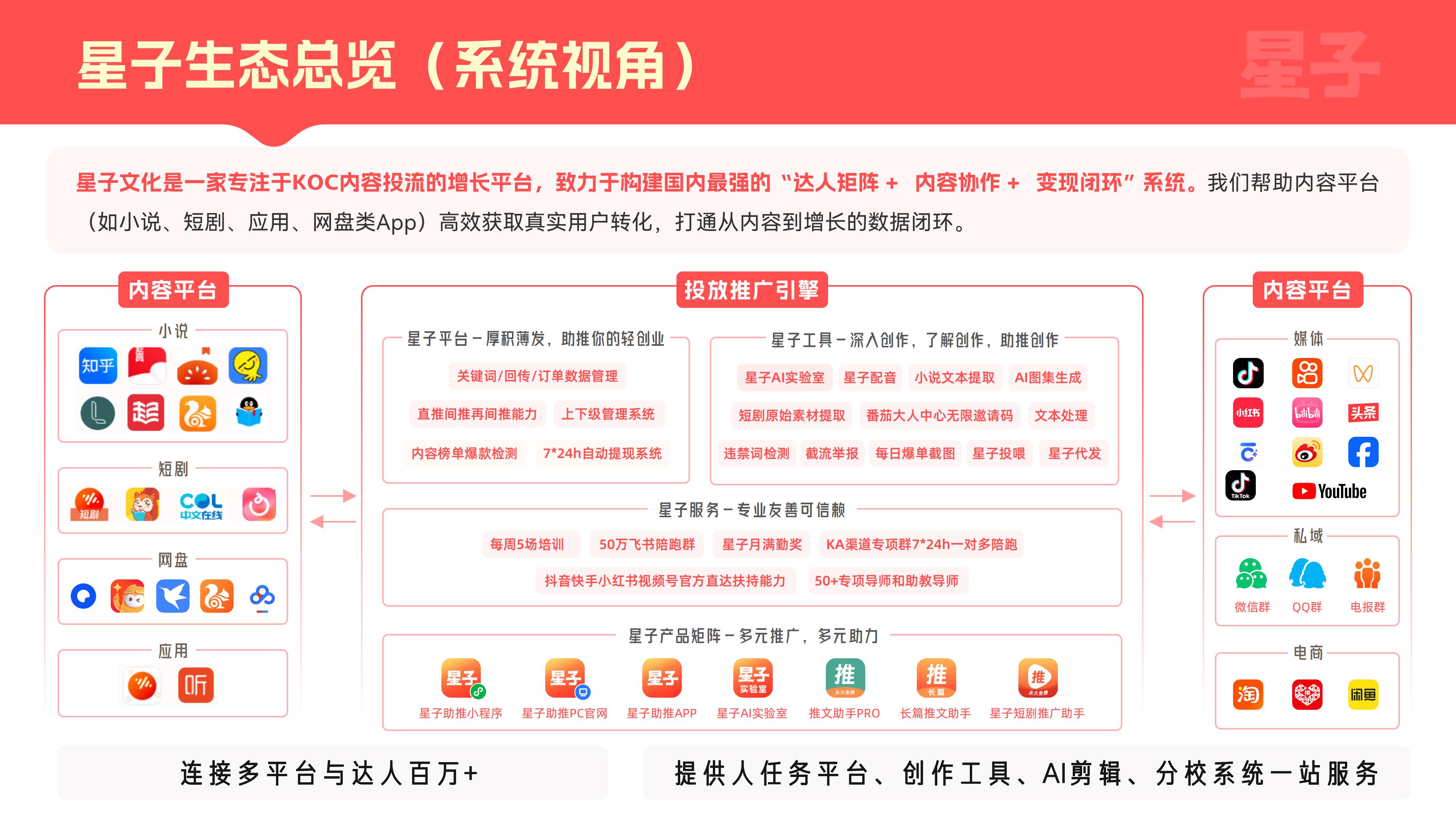 针对不同规模市场主体,星子文化基于《白皮书》洞察推出差异化合作方案:10人以下小团队可聚焦垂类赛道,依托星子模板与AI工具实现精细化运营,快速验证盈利模式;10-100人中型团队可接入星子标准化系统,批量承接大厂项目预算,提升运营效率;100人以上大型团队则可通过API接口与星子生态深度协同,承接年度预算,成为垂类核心执行方,构建长期行业壁垒。