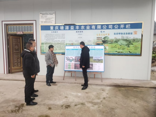 专家组在大足区高升镇太和村支部书记龙洋玥的陪同下,来到重庆塘源益丰农业有限公司在太和村的养殖基地,实地察看了甲鱼生长环境以及生态循环系统的运行情况,并对养殖过程中的关键技术环节进行了详细询问与记录。