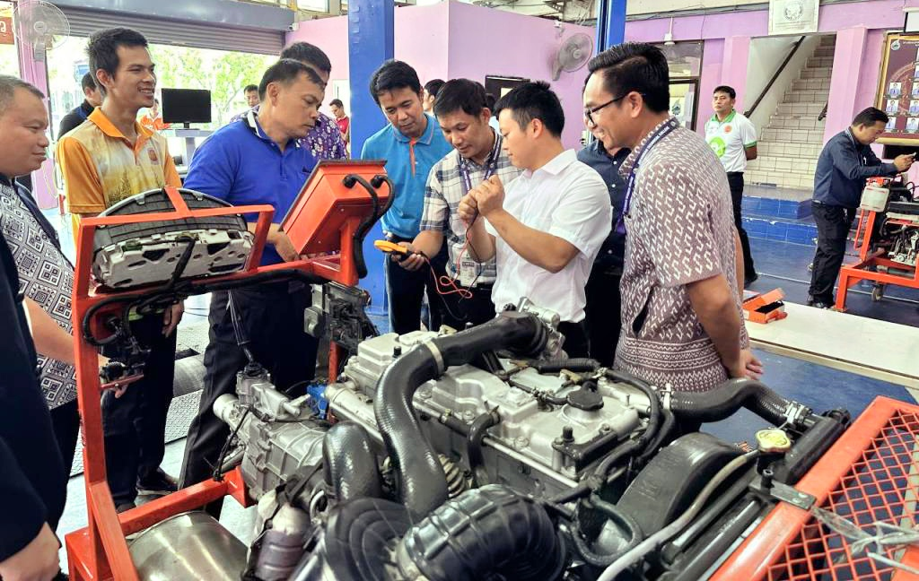 重庆工商职业学院教师在泰国开展汽车维修培训指导。(重庆工商职业学院供图)