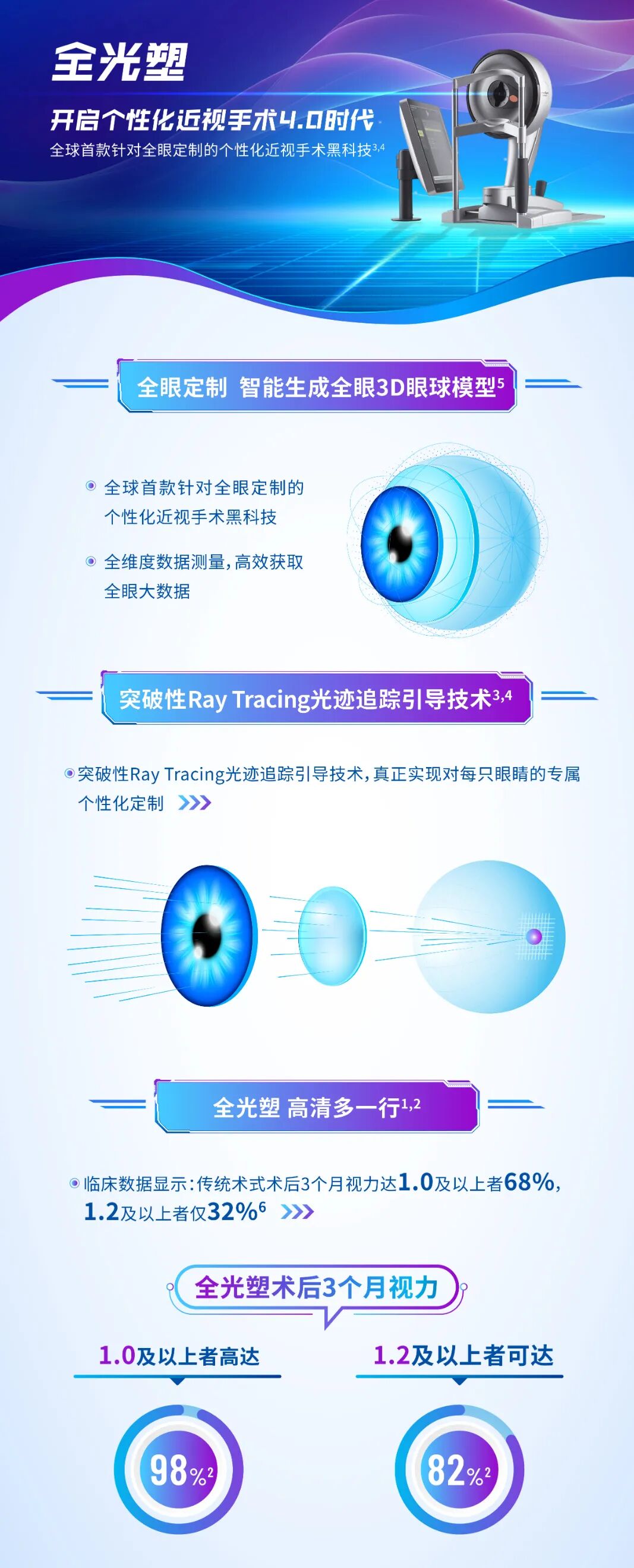 从特点上来说,全光塑个性化半飞秒技术具有创伤小、恢复快的优点。手术过程中使用的飞秒激光能够精确控制角膜瓣的厚度和形状,减少对角膜组织的损伤。患者在术后通常只会有轻微的不适感,视力也能在短时间内得到明显改善。一般来说,术后第二天就可以正常用眼,不影响日常生活和工作。此外,该技术还能够有效减少术后并发症的发生,如干眼、眩光等,为患者提供更舒适的视觉体验。