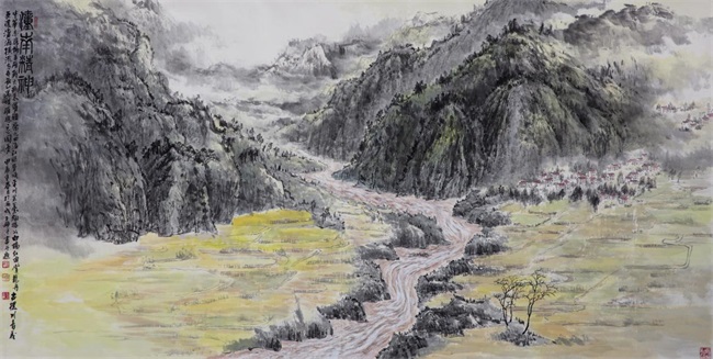 王锁平的作品,犹如一部部无声的诗篇,诉说着他对自然、对人生的深刻理解。以《山城人家》为例,这幅作品展现了一幅宁静而悠远的山城景象。画面中,陡峭的山峰直插云霄,山间云雾缭绕,仿佛给山峰披上了一层神秘的面纱。在山腰处,几户人家错落有致地分布着,虽简陋却充满了生活的气息。从笔墨技法上看,他运用了浓淡干湿不同的墨色,巧妙地表现出山峰的雄浑与云雾的轻盈。线条刚劲有力,勾勒出山峰的轮廓,却又在不经意间流露出一种灵动之美。这幅作品不仅仅是对自然景观的描绘,更蕴含着他对山城、对平凡生活的深深眷恋。在那陡峭的山峰与宁静的人家之间,我们仿佛看到了百姓生活的坚韧与美好,感受到了人与自然和谐共生的理想境界。
