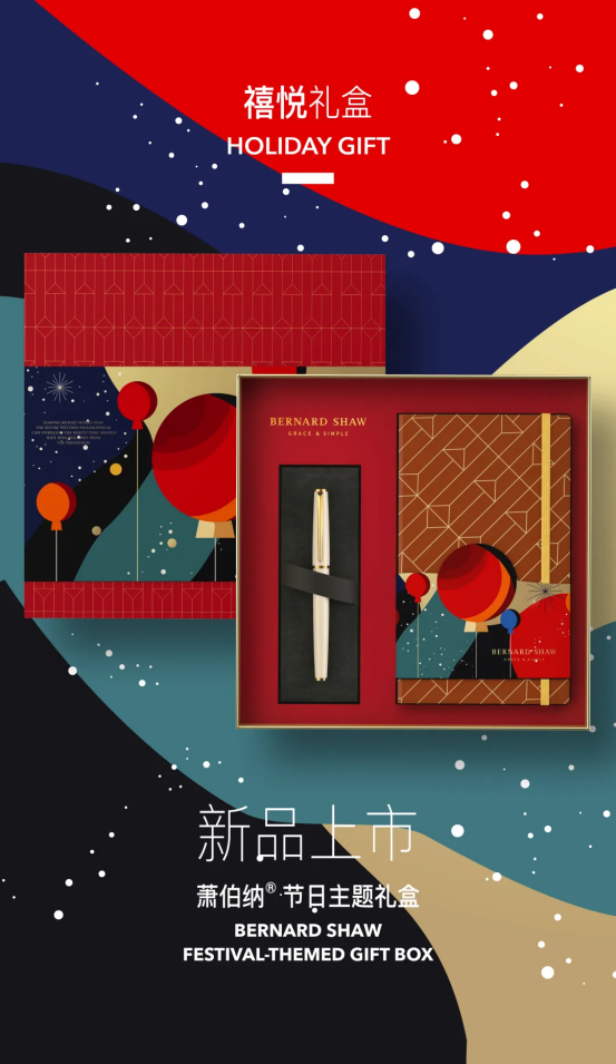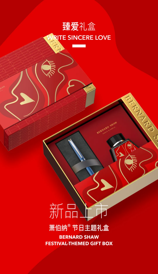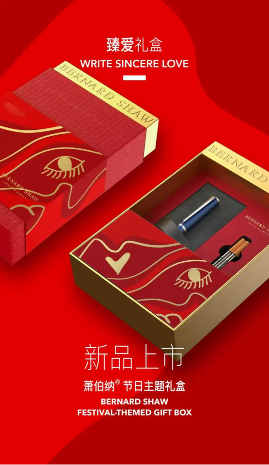 萧伯纳钢笔希望通过这个礼盒诉说团圆中国年、传递爱意祝福,将品牌对于消费者来年的所有美好希冀,在这个特殊的时间节点集中表达,用满满的爱意包裹消费者,给予TA们美好祝愿。